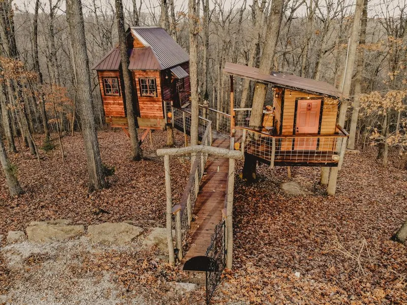 This fully furnished "Ozark Tree Suite" is an authentic treehouse and jacuzzi bath house nestled within seven trees on 10 +/- wooded acres in Barry County, Missouri. Utilized as a treehouse Airbnb business, it is located in the southern Missouri wilderness and is a perfect opportunity to own a business in one of the most scenic places in the midwest. Built just 3 years ago, this beautiful property has already been a significant income provider for the current owner, providing $25,000 of net income in only 7-8 months of renting. With an additional unfinished tiny cabin used as an office on the property you could easily increase your income by renting the full year while also including the tiny cabin as a rental option. Located on Highway 112, 2 minutes from Roaring River State Park, you and your customers would have immediate access to superb trout fishing in a local hotspot for fly fishermen. The area also includes hiking, sightseeing, abundant wildlife, great hunting, and close proximity to Table Rock Lake and the town of Cassville, which provides many local businesses and restaurants.