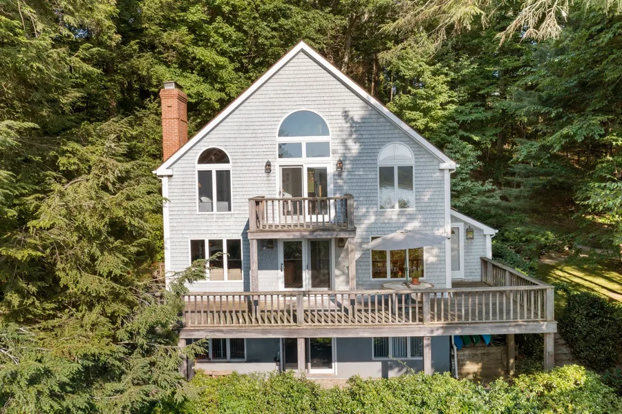 This unique custom-built Oak Post & Beam home features red wood trim both inside and out. Situated across from the scenic Salmon River and surrounded by abundant wildlife, it offers a tranquil sanctuary with breathtaking river views and Western exposure for stunning sunset views. The house is designed to harmonize with nature. The kitchen boasts Koi-colored fire clay ceramic tile countertops, while the wide board floors are made of maple. Mahogany interior railings and various built-ins throughout the house add to its charm. The kitchen features Amish oak cabinets and then seamlessly transitions into the family room with a wood-burning fireplace. Large picture windows grace the main level, extending up to the second and third floors. The first level includes a bedroom with a full bathroom, ideal for those seeking single-level living. Upstairs, two en-suite bedrooms offer different views ...