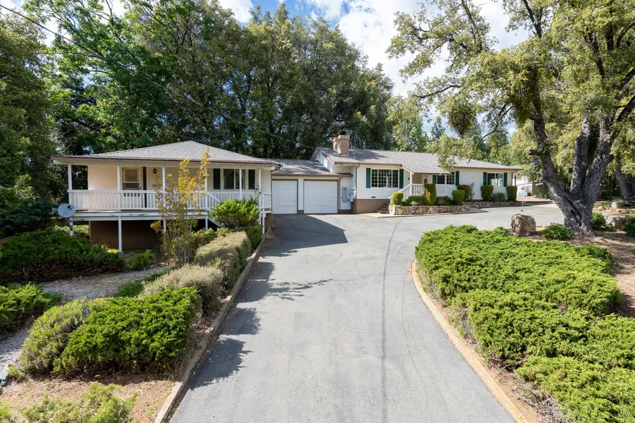 Very unique opportunity - 2 homes with lots of garage space. The roof and gutters are newer, generator was added. Back yard is fenced, has a lovely garden area, and the cutest potting shed! The main home offers 3 bedrooms and 2 baths with open floor plan. Fully equipped attached 2nd unit, with 2 bedroom and 2 baths. Spacious covered back deck looks over the backyard, with a huge oak tree in the center. Circular driveway with mature landscaping , back access to the detached garage for more garage space. This one offers a lot!