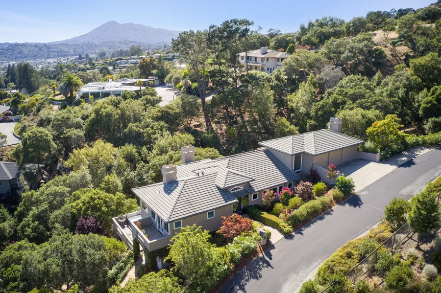 This spectacular estate in Loch Lomond offers unparalleled views of the Bay and two bridges, perfectly complementing its stunning Spanish-Mediterranean design. Built in 1998, this luxurious home features five bedrooms and four-and-a-half bathrooms, including a massive primary suite. The main living areas boast walnut floors and soaring ceilings, creating an inviting and open atmosphere. Step into the formal entryway, with the grand primary suite to the left and a convenient half bathroom to the right. The spacious living room, with its breathtaking views and cozy fireplace, flows seamlessly into the large dining room both ideal spaces for entertaining. The upgraded kitchen is a chef's dream, equipped with top-of-the-line appliances like a SubZero refrigerator, Viking double oven, Bosch dishwasher, Viking cooktop, and SubZero hood. A built-in microwave drawer and ample cabinetry offer bot...