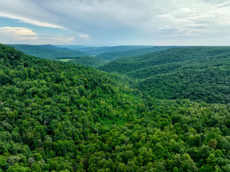 About 100 yards down the trail from the highway are ~8 acres of gently sloping land with a clearing on it overlooking the Calfkiller River valley.
