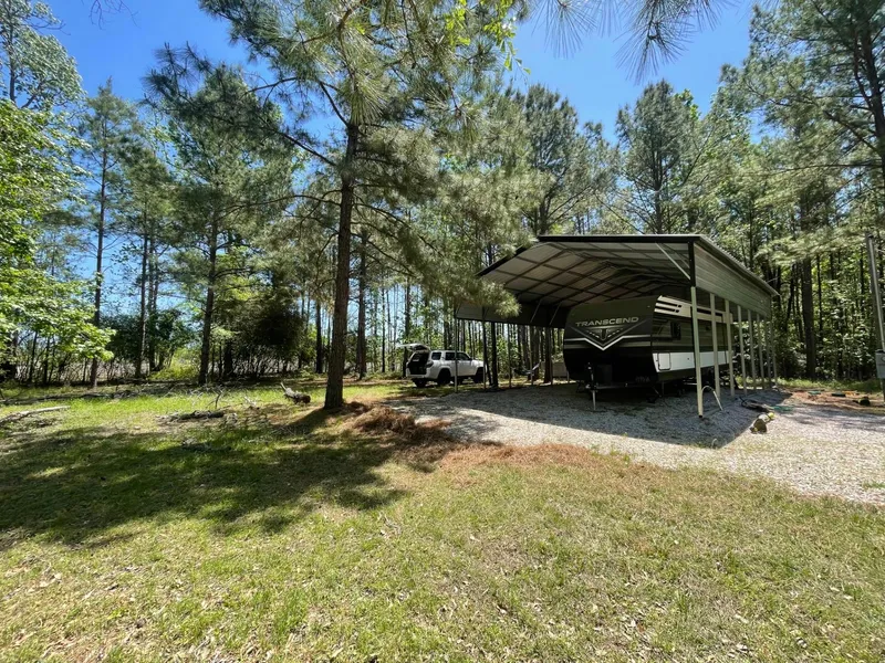 5.7 Acres Unrestricted Totally Hidden with Turn-Key RV Pad & Overhang. City Water, New Septic, 30 AMPs / 50 AMPs; Boat Ramp Access Lake Livingston, Tx