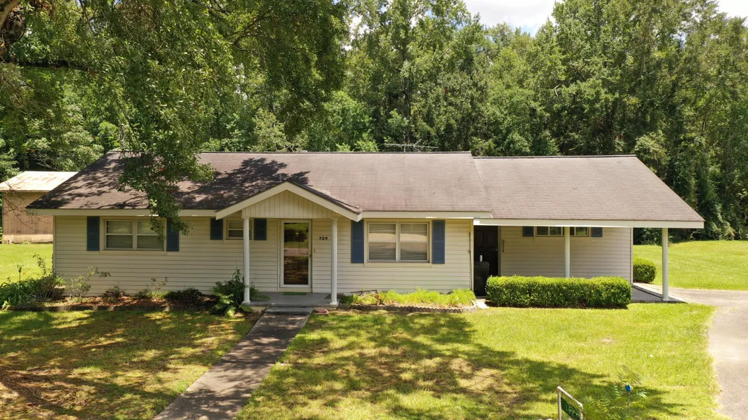 East Brewton, AL-NEW ROOF, NEW ELECTRICAL BOX, MOISTURE BARRIER INSTALLED UNDER THE HOUSE... A landscaped circle drive is a warm welcome to this 1454 sqft home in a desirable area, with a nice open floor plan. Over an acre lot inside the city limits. The entire house has natural hardwood except the utility room. The spacious living room is perfect for relaxed days indoors. The kitchen has a gas stove and was updated in 2019 with a new dishwasher. The 2 full bedrooms and 2 Baths offer plenty of space to grow. The large screened in back porch is excellent for enjoying the fresh air. Outside, you will find a well-manicured front yard. The back yard is partially fenced and home to a shop/storage building, large enough to park your motor home or boat. Priced below appraisal. See documents. Call today for your private viewing!