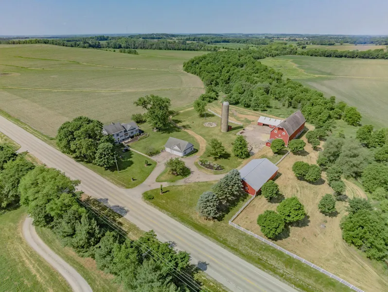 PRICE REDUCED!! Sitting just north of Pecatonica, this is the quintessential Northern IL farm property. This is a very versatile property with so much potential. The home was built in 1917 and has been beautifully remodeled with all newer windows. It is fully insulated, has a walk-up attic, and a great finished basement that has been waterproofed. There are hardwood floors and all the woodwork throughout the home has been custom made to match the original woodwork that is in the dining and living rooms. All electric and plumbing have been updated. Central A/C and natural gas. The kitchen has been updated with custom-built Grabill Cabinets, granite countertops, and stainless-steel appliances. The large first-floor master suite with an attached bath has a jetted Jacuzzi tub, double vanity, glass block shower, a beautiful custom master closet with loads of storage, and a hook up for a washer/dryer. The deck off the master bedroom is perfect for that morning coffee. The large, finished basement has been completely updated for the “Farmhouse” look, heated ceramic flooring that looks like wood, and walls that are paneled with barn wood. It has a custom-built bar made from barn board. The built-in mirror behind the bar is from a horse stall that was in the barn. There is a bathroom and laundry room also located in the basement with the stackable Kenmore washer/dryer. There is also an old cistern off the basement that has been converted into a large walk-in storage area with a second oven. It could also be used as a “wine” cellar. This property has a nice circle drive. Entering off the main portion, it takes you straight into the oversized heated 3 car garage. The garage has a door on the back so you can pull your boat or trailer right through and has a walk-up attic and room for more storage. Off the north side of the drive, it has a 40x70 +\- pole barn with concrete floors providing tons of storage. Behind there and down the lane you have one of the most unique old barns in Northern Illinois which has been featured in several farm magazines and the book, “Barns of Illinois”. This retired milking barn has a full loft above and a 30x60 +\- lean attached. There is a huge concrete fire pit pad and room for animals if you would like to put in some pasture. Behind the buildings, you have tons of timber and trails. A creek runs through the property. An additional 31 acres +/- is available for purchase.