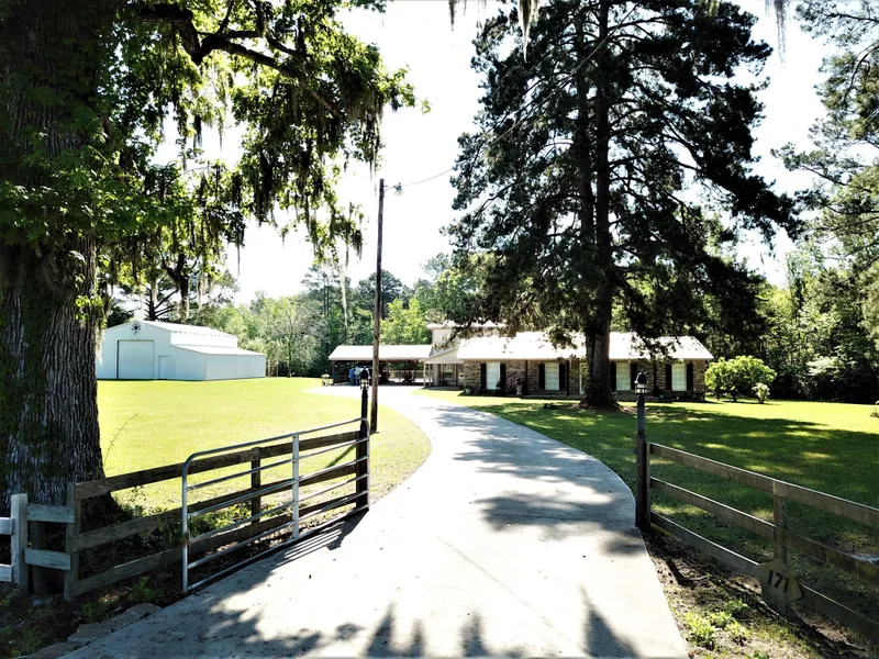 This is a very nice, updated home on 5.866 acres in the country near Lake Livingston located between Point Blank and Coldspring. The property contains two large guest quarters that have separate bathrooms for your guests. The property is well landscaped with large oak trees, concrete driveway, partially fenced, gated driveway, nice pool and outdoor entertaining area including cooking area and TV. Whether you are looking for a nice home in the country for your residence or a place to entertain family and friends, this will be a place you will want to see. The property also includes a fenced dog kennel, two metal barns, one 50'x50' and the other is 30'x60' that would be perfect for boat, tractors, 4 wheelers, horses or any hobby area needed. The property has extra areas for those wishing to have a garden, horses or other livestock. Don't miss seeing this property!!!