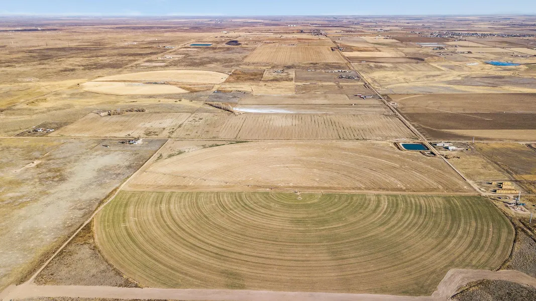 Heavy Industrial zoning I-3. 156 acres with 159 pro-rated acres within the Henrylyn District for pivot irrigation. Situated 1 mile east of County Road 49 and annexed into Keenesburg.