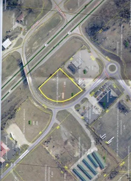 A Primo commercial 1.38 acres m/l building lot. IDEAL for your restaurant, office, project building, business/warehouse, parking lot for nearby businesses, public water, city electric, sewer, internet and gas potential. Immediate access to both St Rt 35 and St Rt 32 is great for any business (not to forget to mention 1 minute from Walmart with no traffic lights). Call now for more info. Located at roundabout.