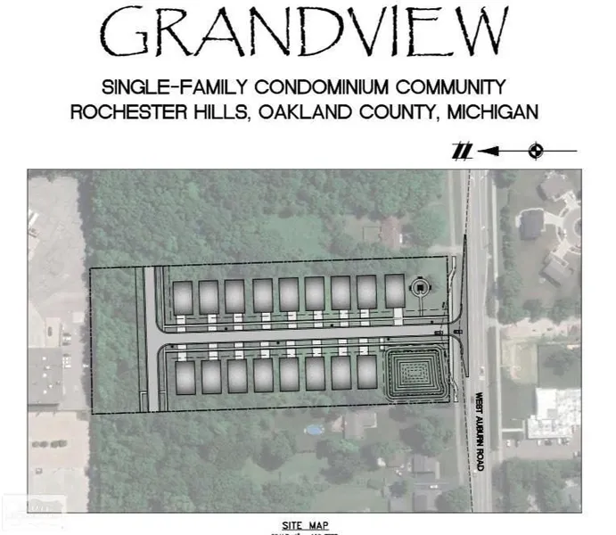 Welcome to Grandview – A Premier Single-Family Condominium Community in Rochester Hills. Exceptional living at Grandview, awaits you as you enter this private enclave of 17 detached single-family condominium homes. Nestled along West Auburn Road, a marquis-style entrance invites guests & residents into this carefully curated community. Located just E of Crooks Road in the sought-after city of Rochester Hills, Grandview is designed for those who value the privacy of a single-family home, a walkable community with the ease of low-maintenance condo living. Each residence sits on its own defined 54’ wide site within a professionally landscaped community that’s buffered by a natural preserve serving as a serene backdrop for residents. At the heart of the entrance, a communal span of over a quarter acre of lawn has been designed for gathering & relaxation. A 12' x 12' pergola-covered area w...