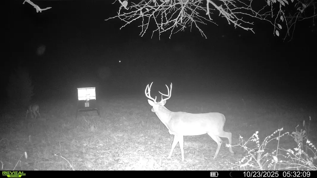 What more could you want? Caney Creek offers high ground with great views, 15+ acres of fertile bottom ground for Boone and Crockett food plots, a year-round creek, and massive hardwoods. As you come in from the East, you have electric at the road, and the boundaries are cleared on the North and South. An older cabin sits by the road as well. As you head west, you have sandy soils with smaller timber, plum thickets, and most of this area has been terraced, a reminder of the old farm country in this area. About halfway, you come to the new switchback road that drops 120 feet into the creek bottom. Here, you feel like you entered an entirely different property. There are massive, Red Oak, Walnut, and Sycamore trees in this bottom, along with the open area full of fescue and soils ready to plant the food plot of your dreams. Next, you come to Caney Boggy Creek, a year-round creek full of wildlife of all kinds. The creek crosses the property from North to South, then gives way to more remote hardwoods as you climb up out of the bottom to reach the East Boundary. Stay tuned for more pictures! The cameras have only been out a short while. So far, we've seen plenty of big hogs, and the big bucks are starting to show up as well.