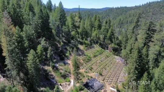 This larger Trinity Pines parcel of 7.9 acres is located at the end of a cul-de-sac that borders National Forest for a great sense of privacy. Most of the land is on the hillside but there have been flats developed and there are two wells with plenty of water, along with a septic to help make developing into a home site much easier. One well was producing 10 GPM's (drilled by Shasta Drilling) and the other is 5 GPM's per seller. Developed terraced garden area would be a gardener's dream.