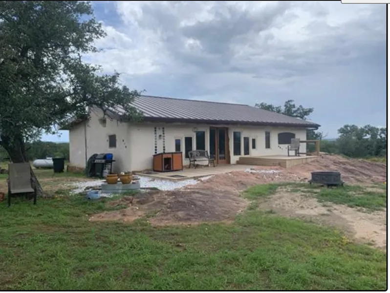 This house is insulated with hay bales but has solid walls. The electric bill runs about $90/month. The well is rated at 2.5 gpm andhas two 500 gallon storage tanks and even provides water to a tank. The bedroom, living room and kitchen are in one space.There is an extra bedroom and bath in a 192 sq foot building and it has a shop attached. The lot has beautiful post oaks trees thatwill not be effected by live oak decline. This place has water and feeder for deer and backs up to a 153 acre tract.