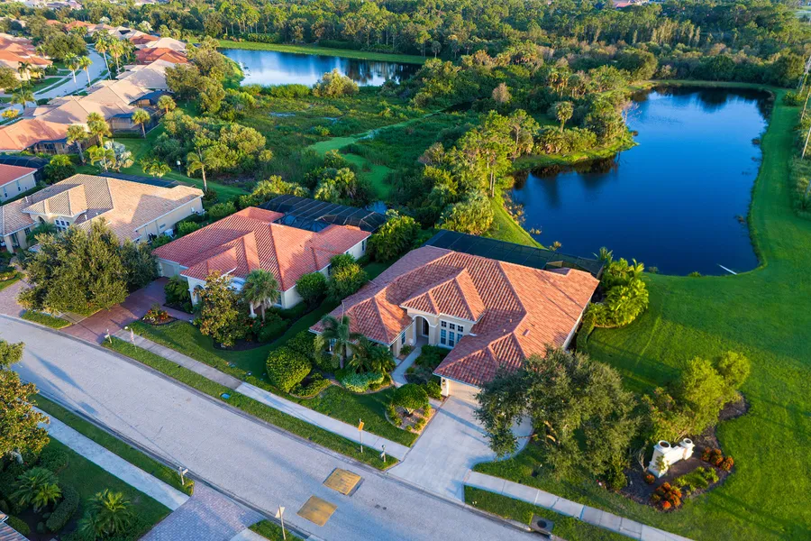 Extraordinary lakefront estate home! Entering through the 8-foot double doors you're not sure where to focus. The grand architecture, arches, columns, 14-foot ceilings, sprawling ceramic floors and then finally you peer through the vanishing glass wall beyond the pool to the private lake and preserve. No stone unturned in this home with the latest in flooring, tile, colors, high-end appliances, lighting and fans. The structure has been outfitted with impact windows, latest in barrel tile roofs and newly added pool and spa. The pictures don't capture the large open space of the home. This large four-bedroom, four-bath home is ideal for live-in help or in-laws, as a separate entrance leads to a sitting area with private bedroom and bath. The preserve and lake view are mesmerizing, from a mother and young doe grazing to birds fishing in the lake. No homes in sight. A remarkable community, t...