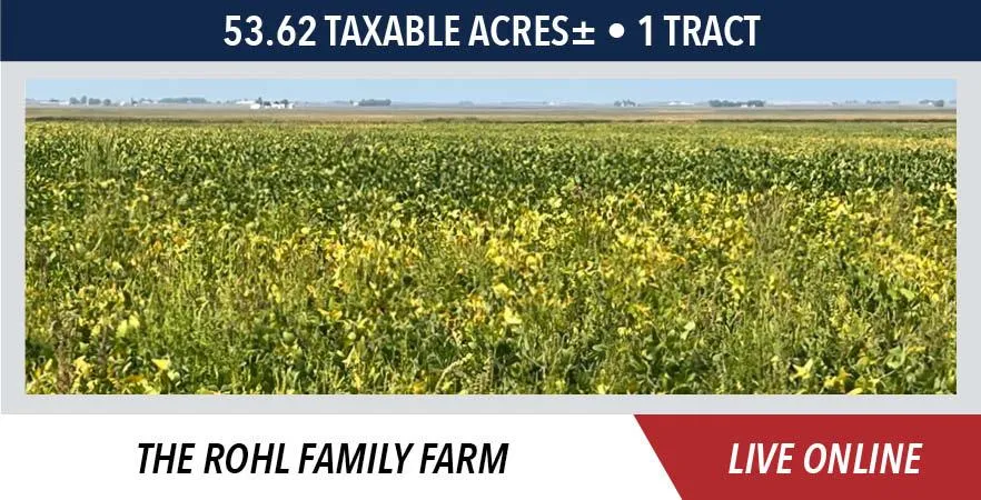 The Rohl Family Farm will be sold on a price per acre basis, based on 53.62 taxable acres.