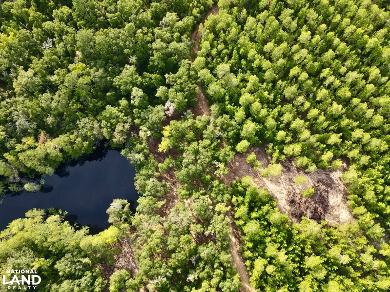 The newly established road system, which totals 30 feet wide and one mile long in all, leads to a cleared homesite that sits above one of the multiple spring-fed ponds, with its surrounding understory cleared for gorgeous scenery.