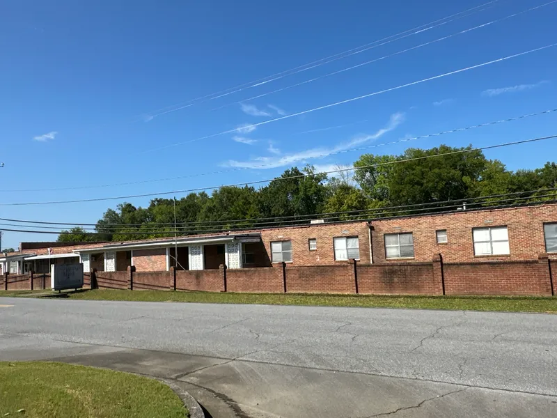 The building is designed for accessibility, with wide hallways and doors and one level living. It is enclosed by a sturdy brick wall fence with gates ensuring privacy and security for the residents and visitors. This feature is particularly valuable for institutions needing control over access and providing a safe environment.