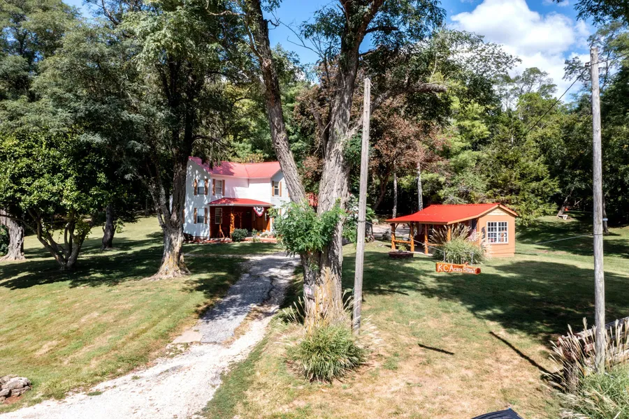 Very picturesque 37 acre property on Old Hwy 57 with a beautifully restored farmhouse. Kitchen features hickory cabinets, solid surface countertops, island & breakfast bar with oak floors & knotty pine bead ceiling. Enjoy playing pool in the game room or relax in the hot tub on the patio.