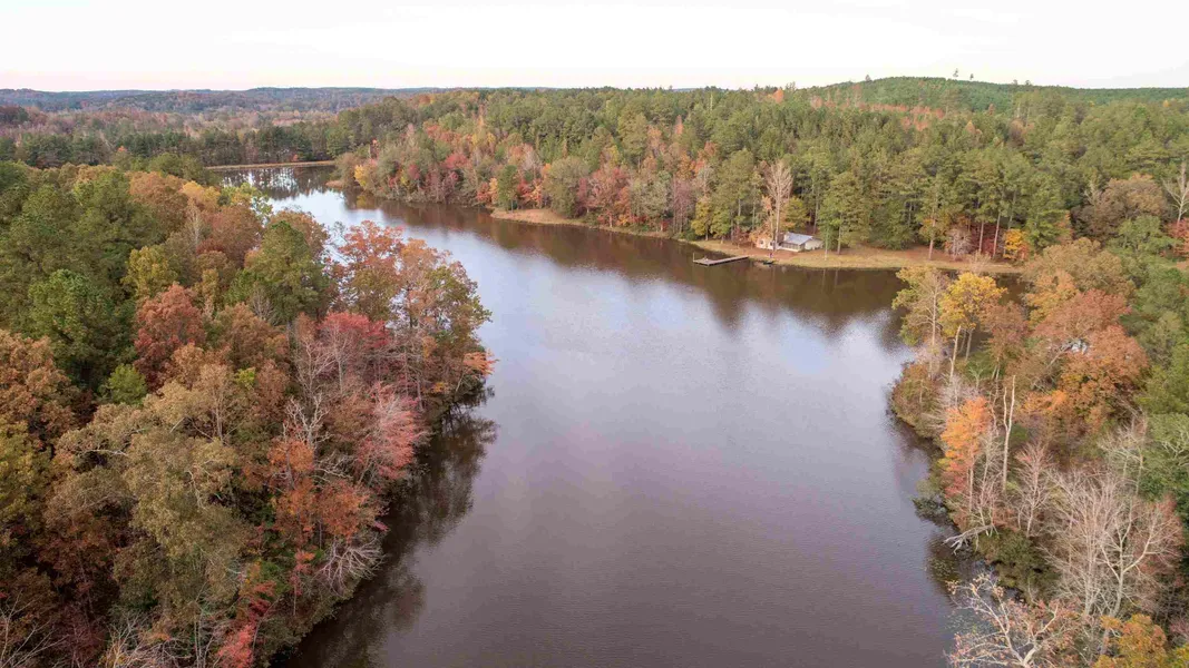 A cabin sits on a beautiful lot that gently slopes to the water and a 65 foot pier with a 300 square foot deck at the end. There are several other places around the lake where homes could be built with easy lake access.