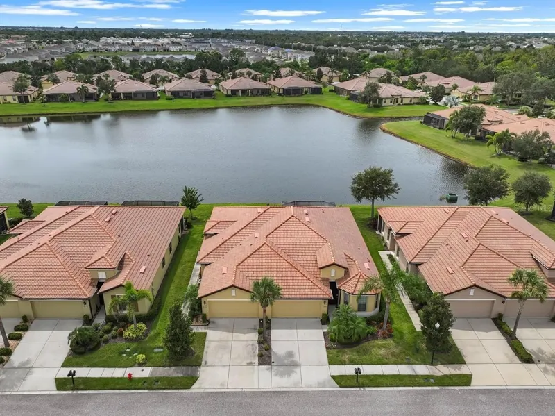 Prime location with serene south-facing pond views! This move-in ready 2 bedroom, 2 bathroom villa is set on one of the best pond lots in Southshore Falls, a premier 55+ gated community in Apollo Beach. The open and inviting floor plan features hardwood floors, abundant natural light, and expansive windows framing the water views. The spacious kitchen offers rich wood cabinetry, stainless steel appliances, a closet pantry, and a bar-height counter perfect for dining or entertaining. The primary suite easily fits a king bed and additional furnishings, with peaceful pond views, a large walk-in closet, and ensuite bath with standalone shower. A split floor plan provides privacy, with the sunlit guest bedroom and nearby hallway full bath on the opposite side of the home. Triple sliding glass doors open to a generous screened lanai overlooking the water, ideal for year-round relaxation. Southshore Falls offers an unmatched active adult lifestyle with a 14,000 sq. ft. clubhouse featuring billiards, a coffee/internet café, fitness center, library/card room, hobby/craft rooms, and a grand ballroom for social events. Outdoor amenities include three sparkling pools (lagoon, resistance, and spa), pickleball, tennis, bocce, shuffleboard, putting greens, cornhole, ping pong, and miles of scenic walking trails where you can enjoy Florida’s natural beauty and wildlife. The community also hosts a variety of activities and clubs to keep residents connected and engaged, all with the peace of mind of a 24-hour manned gate. Conveniently located near I-75 and US-41, Southshore Falls offers easy access to Tampa, St. Petersburg, MacDill AFB, and Bradenton. Just minutes away you’ll find waterfront dining at Circles Waterfront and Finn’s Dockside, shopping centers, parks, the Manatee Viewing Center, and the Apollo Beach Nature Preserve, with award-winning Gulf Coast beaches only a short drive away.