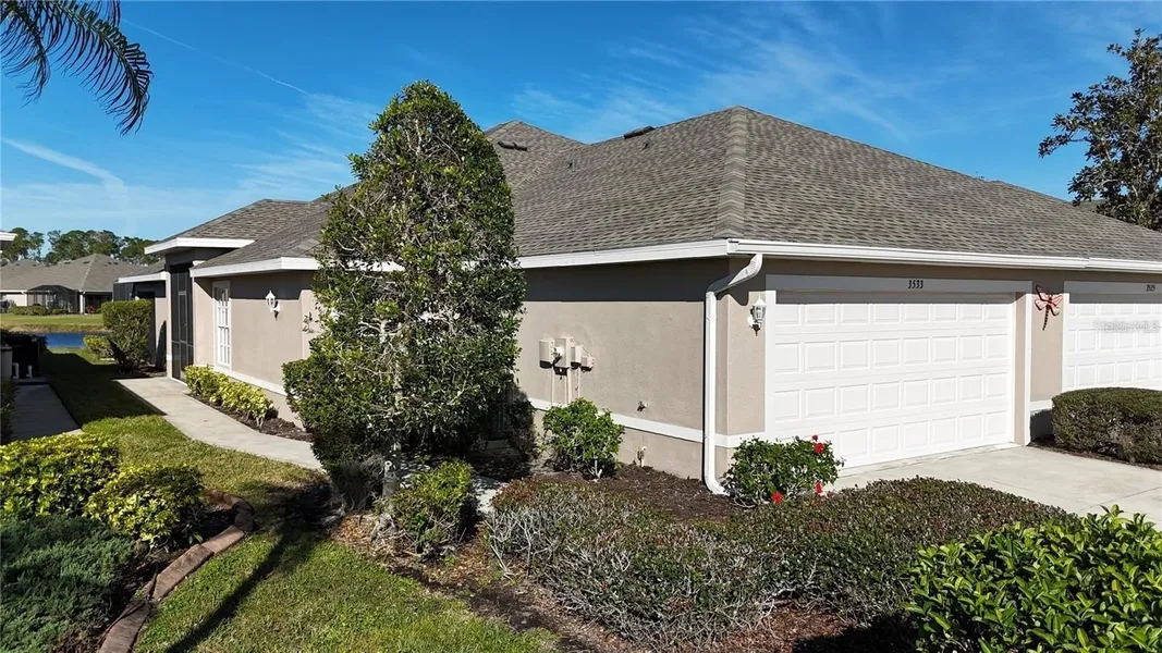 *3D INTERACTIVE VIRTUAL TOUR* Welcome to the Villas of Sabal Trace, one of the most desirable maintenance-free, gated, and pet-friendly communities. *TURN-KEY FURNISHED* This picturesque lakefront villa offering a relaxed and convenient lifestyle has 2 spacious bedrooms, 2 bathrooms, and a versatile BONUS room (w/closet) that can easily be transformed into a true 3rd bedroom, den, or office—perfect for whatever suits your needs. 2023 ROOF, A/C & Water Heater! Pull into the driveway and be met with lush, tropical landscaping from front to back including green grass, palm trees, curbing and the scent of flowers in bloom as you make your way down the walkway to be welcomed into your screened in front entryway. Open the front door to be greeted with an open and spacious Great Room that boasts high, vaulted ceilings, recessed lights, wood laminate floors, plant shelves, wood blinds and sliding glass doors to your backyard oasis. The open-concept design creates a bright, welcoming atmosphere, enhanced by cathedral ceilings and neutral tones throughout. The kitchen and dining area combo is the perfect spot for entertaining family and friends. The gourmet kitchen houses a breakfast bar, closet pantry, plant shelves, solid wood cabinets with decorative molding, Stainless Steel appliances (brand NEW fridge) and a built-in, in-lay, a nice spot for a hutch or coffee bar. The owner's suite is a true retreat, featuring direct access to the private EXTENDED PAVER LANAI, built-in closets (one walk-in) and an en-suite master bath complete with dual sinks and a walk-in-shower, combining both style and functionality. The split floor plan ensures the ultimate privacy for both you and your guests. The guest bedroom is filled with natural sunlight, ceiling fan, private closet and carpet. The well-appointed guest bath is right outside the bedroom, and includes a vanity, mirror, shower/tub combo and toilet. Convenience is key with a well-designed interior laundry room that comes with extra storage space, plus washer and dryer. Love the outdoors? There is not 1 but 2 outdoor areas this villa offers! Eat out in your enclosed Florida room that has screens plus vinyl inserts that serve as extra room... or unwind with a drink while catching the gorgeous sunset, grill or entertain in the oversized screened in lanai w/gorgeous LAKE VIEW that will make you feel like you’re on vacation everyday! The Villas of Sabal Trace is a gated, pet-friendly community with no age restrictions, offering a safe and peaceful environment to call home. The community amenities are outstanding, with a heated pool, a clubhouse, a fitness room, and a variety of social activities to enjoy. With low HOA fees and no CDD fees, you can truly have it all—an exceptional home in an exceptional location. Conveniently located in the heart of North Port, this villa is close to everything you could need. You’ll find shopping, dining, golfing, and medical facilities just minutes away, as well as a dog park, aquatic park, and the vibrant Downtown Wellen Park. The area also offers easy access to our beautiful Gulf Coast Beaches, making it the ideal location for those seeking both convenience and a relaxed, coastal lifestyle. This villa home is the perfect place to entertain and create lasting memories, don’t miss the opportunity to make it yours! Put this on your MUST SEE list and make an appointment today!!