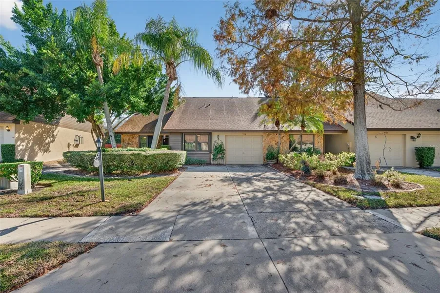 Home sweet villa! Located in popular Lake Seminole Villas. So much to love including the vaulted ceiling and fireplace in the great room. Over 1350 square feet. Almost brand new double hung vinyl windows. Huge primary bedroom has an ensuite and a walk-in closet. The HOA fees include: internet, cable, pool usage, irrigation system including the cost of water used to irrigate the lawn, lawn maintenance. New water heater in 2024. Newer attic insulation. Pull down ladder for attic access in garage. All ages are welcome. No CDD and no land lease. Must own for 2 years prior to renting. Community pool.