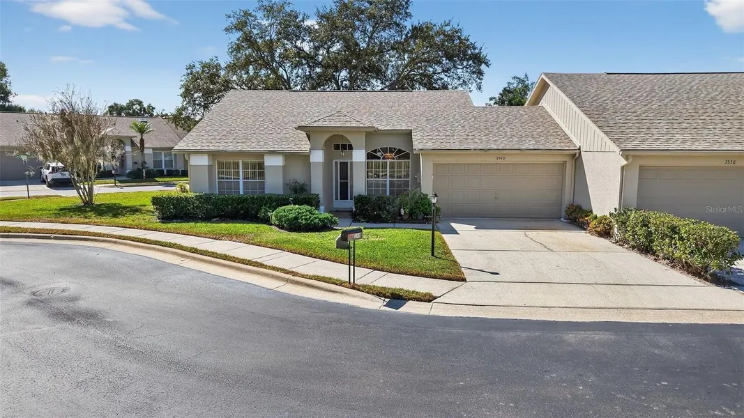 Under contract-accepting backup offers. Welcome to this beautifully maintained 2 Bedroom, 2 Bathroom End-Unit Villa in the desirable 55+ community of Nature's Cove at Highland Lakes! One of the unique things about this particular villa, is it is on an oversized lot of 7,645, where other villas in Nature's Cove are much smaller. This bright split floor plan features bay windows in the kitchen and primary bedroom, a spacious primary suite with dual sinks and a large walk-in closet, plus major updates including a new roof (2024), HVAC (2020), and hot water heater (2014). The large 2-car garage offers excellent storage. Highland Lakes is an exceptional 55+ golf community offering 3 private 9-hole courses with unlimited free play, two clubhouses, Olympic sized pool, tennis, pickleball, a wood shop, craft rooms, and more. The Lodge on Lake Tarpon provides an additional pool, whirlpool, fireplace, veranda, and pontoon boat cruises,all included. Secured on-site storage is also available for boats, jet skis, and RVs. Master HOA is $164/month: Clubhouses, pools, 3 golf courses. Nature's Cove is $205/month: Landscaping, trash, cable TV & internet totaling $369 per month. Enjoy maintenance-free living and a vibrant active lifestyle! Schedule your tour today!