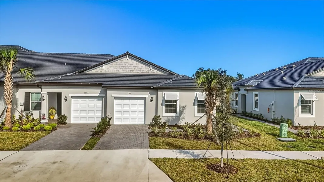 Resort-style living awaits in this never-lived-in Dayspring II end-unit villa located in the 55+ Medley at Mirada community. This single-story home offers approx. 1,616 sq ft with 2 bedrooms, 2 baths, and a flexible den/bonus space. The open great room and chef-friendly kitchen create an ideal layout for entertaining. The light-filled primary suite features a walk-in closet and spa-style shower, while the guest bedroom and bath are perfectly situated for visitors. Additional highlights include an attached single-car garage. Plus, this home includes a convenient storage space in the back of the Villa for a golf cart, modern finishes, and energy-efficient construction. HOA covers water, Ultra Spectrum cable, WiFi, and exterior maintenance for true low-maintenance living.