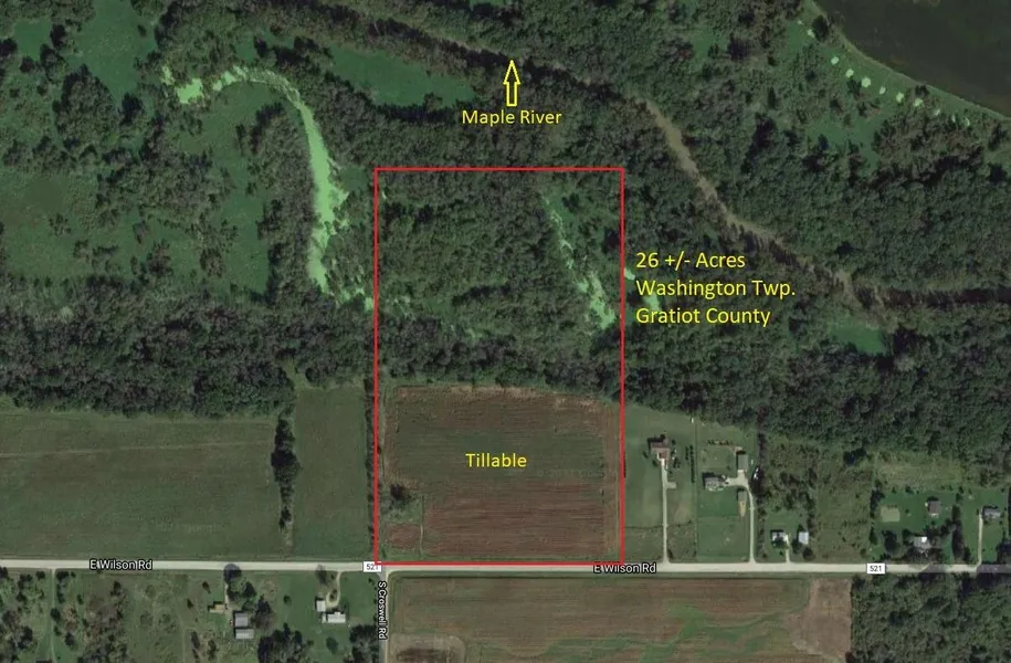Here's approximately 26 acres of vacant land near the Maple River located in Southern Gratiot County, just West of US-127!! Property consists of tillable (11+/- acres) and Maple River wooded watershed ground. Perfect location just off of the highway for recreational purposes such as deer, turkey & waterfowl hunting! Many potential building sites along the paved road frontage and great income from the leased tillable acres! Property in Southern Gratiot County doesn't come available very often and is in high demand, don't miss out on this opportunity & give Brandon a call at 989-251-9060 today to view this great parcel!!