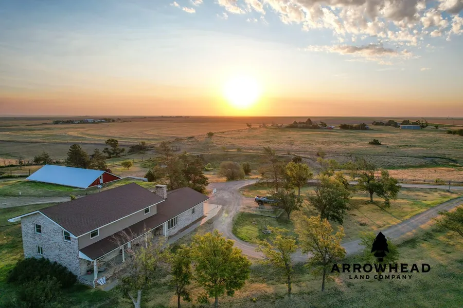 PRICE REDUCED! Introducing the Voda Homestead Elk Farm, a beautiful northwest Kansas property that is as unique as they come! At the end of a long circular driveway is a 5-bedroom, 3.5-bathroom home set up with a wood-burning fireplace and spacious rooms. There is plenty of space for family and gatherings! The home is equipped with seamless steel siding and steel shingles. There is approximately 4,500 +/- square feet of living space, with a 600 +/- square foot garage. East of the house, there is a fantastic area that could make for a nice potential pond. There are three water wells on the propertyone hooked up already and the other two serving as extras. Outside of the beautiful home, you will notice the 14 +/- acre high fence currently holding 18 elk. There is a 75 x 24 working barn with a hydraulic chute and working facilities. The elk are negotiable. There is also a 24 x 14 chicken coop; the chickens are included in the sale. Additionally, there is a 36 x 28 barn, a 12 x 10 storage shed, and a 27 x 14 workshop equipped with power, plus a 40 x 80 metal shop built with 12 ft sidewalls that provides plenty of room for equipment and storage, and a partial loft. This farm has been well-manicured and is set up perfectly for you to come in and make it your own. Utilities are $250 +/- per month, and taxes are $4,640 +/- per year. The farm is just 15 +/- minutes from Wakeeney and 40 +/- minutes from Hays. Buyer pre-approval is required prior to showing. All showings are by appointment only. If you would like more information or wish to schedule a private viewing, please contact Doug Wagoner at (785) 769-3038 .