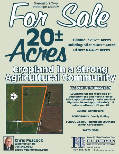 Research Parcel Informationon the west side of Boundary Pike and nor side of 900 S, approximately 1 miles south of Hwy 36 and approximately 1.5 miles SE of Lynn, IN