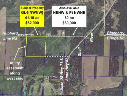 Superbly located 40 acres of Potlatch land along US Hwy 71 only one mile from the championship 18-hole Blueberry Pines Golf Course between Park Rapids and Menahga! Public access to Blueberry Lake and the Shell River is just two miles away. Fairly level upland wooded with varying ages of jack pine and red pine. Hubbard Line Rd along the north offers easy access to the tract. Excellent chance to secure a site for hunting, fishing, golfing, sporting, boating, canoeing, and water recreation.
