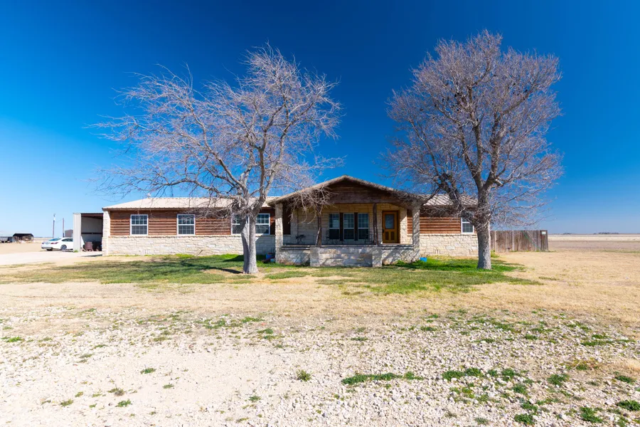 Calling all ag families! Very rarely does a property with almost 6 acres in Wall ISD come up for sale! This property consists of a 2,240 SF mobile home that has been rocked on three sides and has log cabin lap siding too. You can enjoy a nice breeze on the back covered porch, even on those really hot days. The house has 4 bedrooms/3 bathrooms with two living spaces and a see-through fireplace. Outside, there is a detached carport with enclosed storage or party barn. On the north side of the property are four well built barns that would be perfect for any of your animals, whether it is stockshow animals or horses. There is Millersview water at the road, but there is no tap.