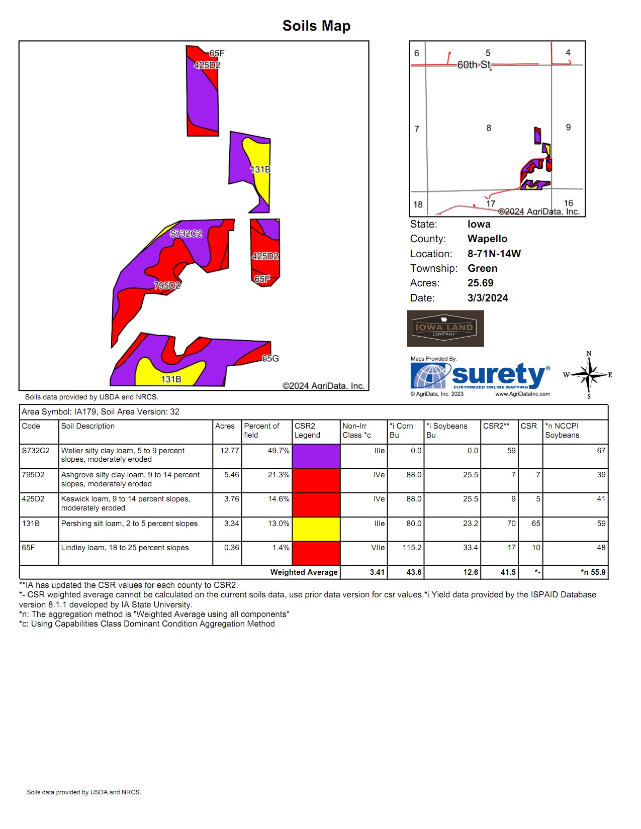 Search for detailed parcel information including; Elevation & Vegetation Maps, Ownership Information, Detailed Parcel Information, Crop History Map, Soil Survey Productivity Data, and more.