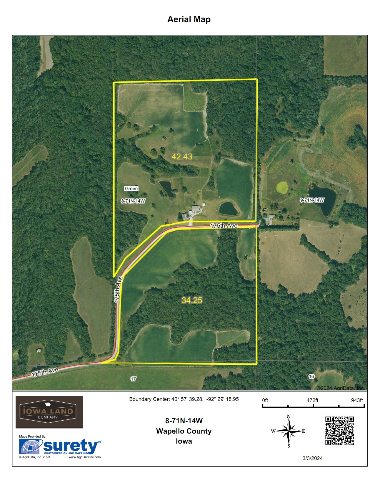 Description 77 +/- acres located in Wapello County just 4 miles south of Ottumwa, Iowa. This farm is in a low-pressure area that is known to produce and hold large mature whitetail and an abundance of turkeys, and I do mean abundance! Tucked away and surrounded by a large block of timber sits paradise! This farm is one of the best smaller tracks Ive ever put boots on. As I pulled into the farm I saw a hen turkey, 6 deer and 2 strutting toms. I knew this farm was special. Can you imagine walking out your front or back door and go hunting! Well, you can. The farm is divided by the dead-end road which is great for hunting different wind situations and not burning out one side or the other. The views on this farm are incredible, stunning sunsets and wildlife galore! Bucks over 160 have been taken every year of the last five years with some well over that. There are 27+/- acres of crop ground with a CSR2 of 41.5 that are currently in beans and would make a fantastic food plot and plenty more acres that could be put into strategically placed smaller food plots. Winter wheat also has been planted. Situated in the middle of the farm is a charming single-family home built in 1918. The first thing you will notice is how welcoming the home feels. The covered front porch would be perfect place to enjoy your favorite beverage and watch the wildlife or pick the fruit of the apple, peach, pear, and plum trees planted around the home. The home has 5 bedrooms, 1 bath with full basement and half-finished attic. There is a large mud room to hang coats and kick off your boots on those rainy or cold days before walking into the kitchen. The kitchen is roomy with a kitchen dining combo. The living room is large and has plenty of room for entertaining guests and the 3 seasons room has a wall of windows to enjoy those beautiful sunsets! You can have a fish fry for your friends, both ponds are stocked with bass, channel cat, bluegill and crappie! The garage was built in 1988 has 1152 sq ft. There is a 42 x 62 Steel Morton Building built in 1994 has concrete floor and double 16 sliding doors that will make an excellent place to store your equipment, hang out during November Rut or would make a great man cave. If you have been looking for the smaller tract in the middle of a big timber with excellent hunting, do not let this one get away! This truly is a hunters paradise! Farms like this do not come up for sale often.