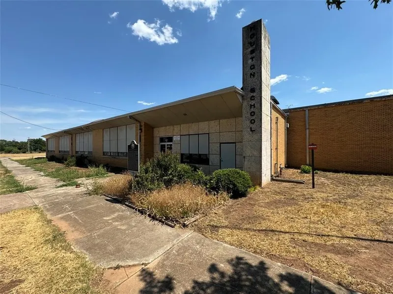 This former Abilene ISD school was last used as the Houston Achievement Center. Zoned LI with a front office, eight classrooms (one has been converted to a kitchen with two offices), two bathrooms, one library area, and a large gymnasium or cafeteria space, this property could be used as by one industrial owner or tenant or subdivided into lease space for trade businesses with quick access to Treadaway. Remove windows, add roll-up doors and convert each classroom to individual lease sites. Historical site marker indicates historically significant activities took place at the site; it does not limit use of structure.