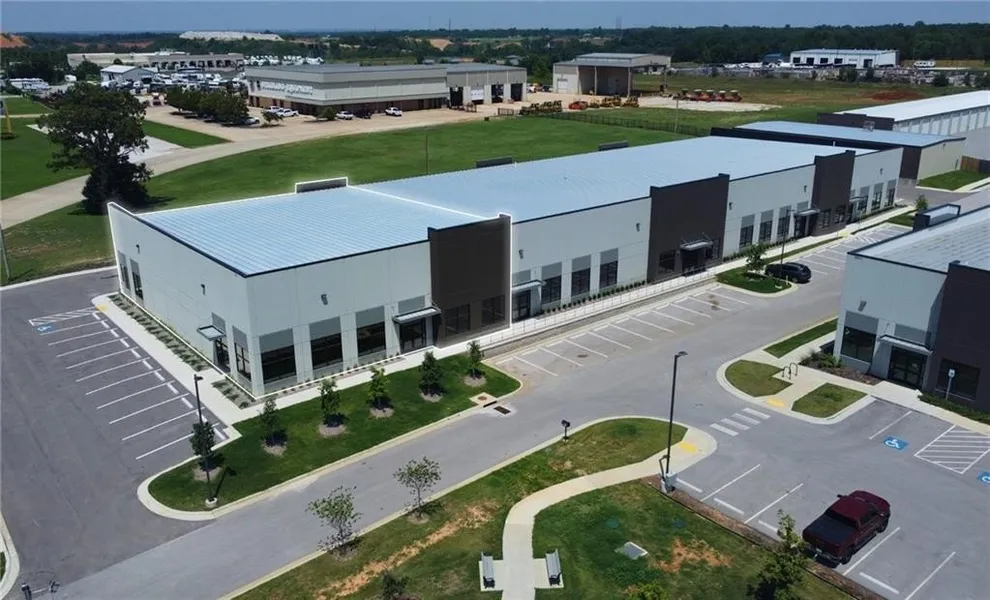 Features include 23’ clear height, 12’x10’ roll-up door, and 1 community dock.