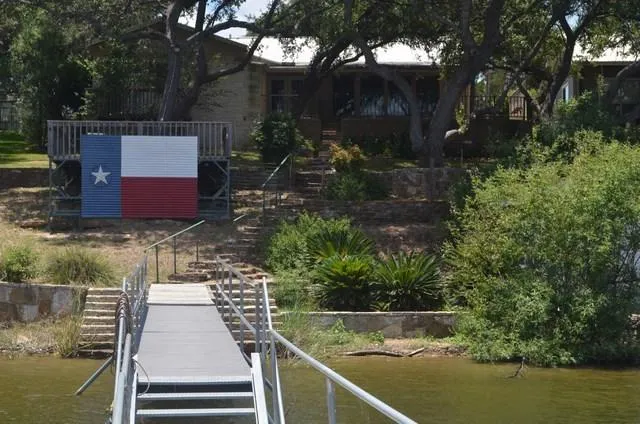 Some of the best deep water on Lake Buchanan in a cove protected from the wind but also adjacent to open water. Even as the lake may go down the dock will automatically go out so you will to continue to have great water. This 3/3 with a bonus room or office/study/storage is approximately 1856 sf on about .4 acres with 75'+/- WF. Large living/dining area with a huge fireplace. Rocked and standing seam metal roof, 3 toilets, stove, and 4-ton 14 SEER HVAC with heat pump new in 2012. Some electrical service upgraded. Covered porch looks out onto a shaded yard with soaring oak trees and wonderful views. There is also a wooden deck close to the water. Boat dock has one boat slip with lift and a lift for two jet skiis. Detached 2-car carport and single garage boathouse storage on the water. Perfect weekend family vacation home!
