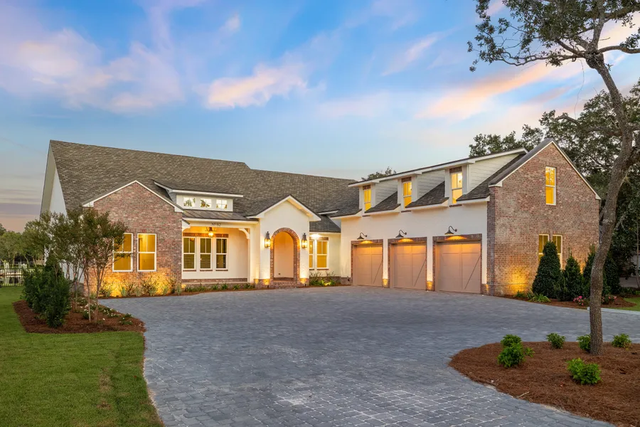 Life on the water takes center stage in this newly constructed Reiker Homes residence offering more than 4,500 square feet of refined living space. With 100 feet of deepwater frontage and seamless access to Choctawhatchee Bay and the Gulf of Mexico, this property delivers the ultimate boater’s lifestyle. Designed primarily on one level, the home features four bedrooms, four and a half baths, a three-car garage, and a dedicated office. Expansive windows and French doors frame sweeping water views from both the open living spaces and the master retreat, where a fireplace adds warmth and elegance. The kitchen is a chef’s dream with Thermador appliances, a farmhouse sink, custom pantry shelving, and an ice maker, while oak hardwood floors and marble and quartz surfaces extend throughout. Guests enjoy privacy with the thoughtful split floor plan, plus a versatile upstairs bonus room ideal as a media lounge, game space, or additional office. Outdoors, a paver pool and spa invite endless entertaining alongside a fully equipped summer kitchen with covered dining. A new deepwater dock is underway, with opportunities for customization by the future owner. Set amid live oaks and magnolias, and just minutes from the private Destin airport, this estate combines natural beauty, luxury finishes, and unparalleled access to the open waters of the Emerald Coast.