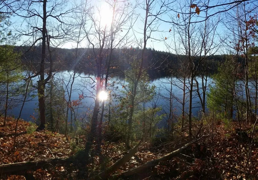 There is a private gravel road that leads from the gated entrance and meanders through the property leading you to your lakefront building site. At the lake shore, you have an incredible high bluff building site that is way above the water with tremendous views. Imagine walking out on your deck, overlooking the lake below, and hear a Loon call from across the lake. White pines and hardwoods make up the forest around the building site providing a perfect canopy. Walking down to the lake shore is very easy via a natural draw.