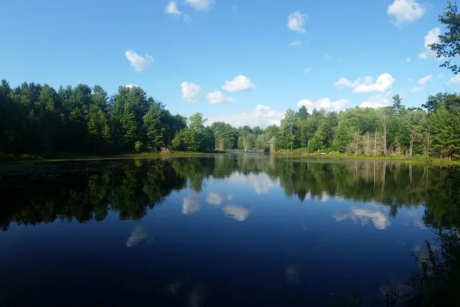 From the quiet paved road entrance, you meander down a pre-existing lane that takes you back, 800 ft. away from the world. At the end of the lane is your already cleared building site, overlooking your private pond full of fish and your woods full of wildlife! Power has also been brought into the building area, which is a huge savings. As an another added bonus, you have deeded access to the adjoining 60+ acre lake which is fed by the Little Salmon River, and has huge Bass, Blue Gill and Pickerel. Absolute heaven!