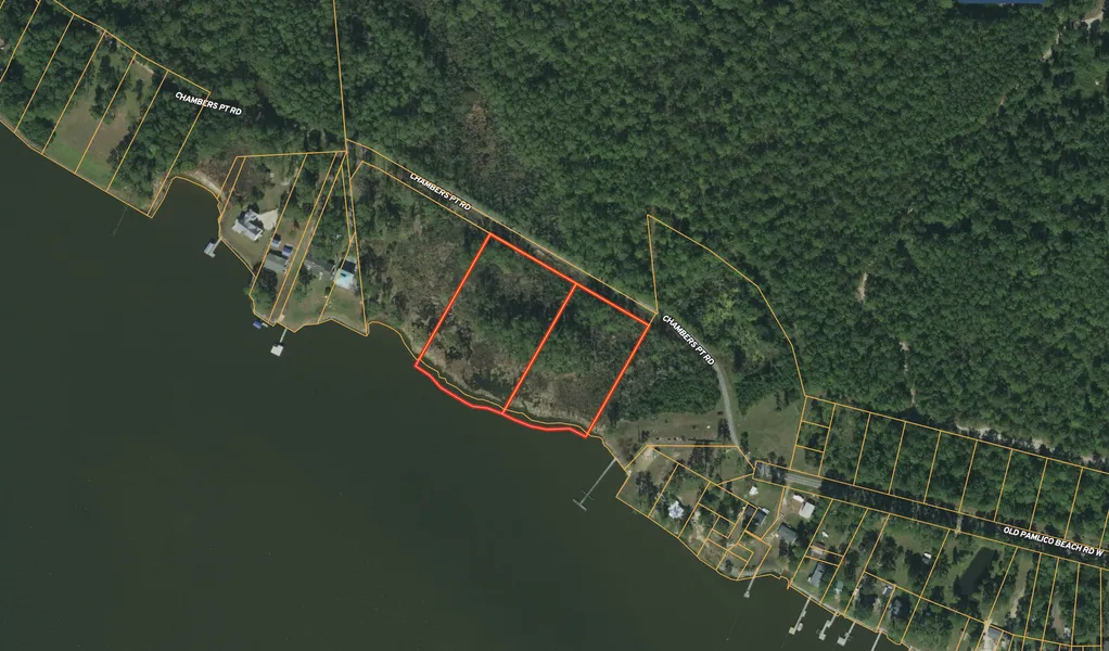 Research Parcel InformationDrive to the very end of Old Pamlico Beach Road W. Where the pavement ends, is the beginning of Chambers Point Road. The property is on the left on the Pamlico River. See signs.