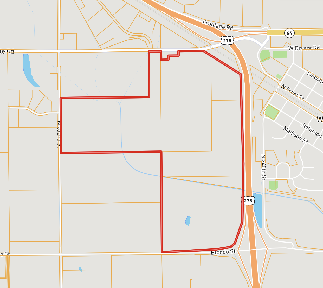 Research Parcel InformationTake Hwy 275 to Blondo Street Exit, go west to the property.
