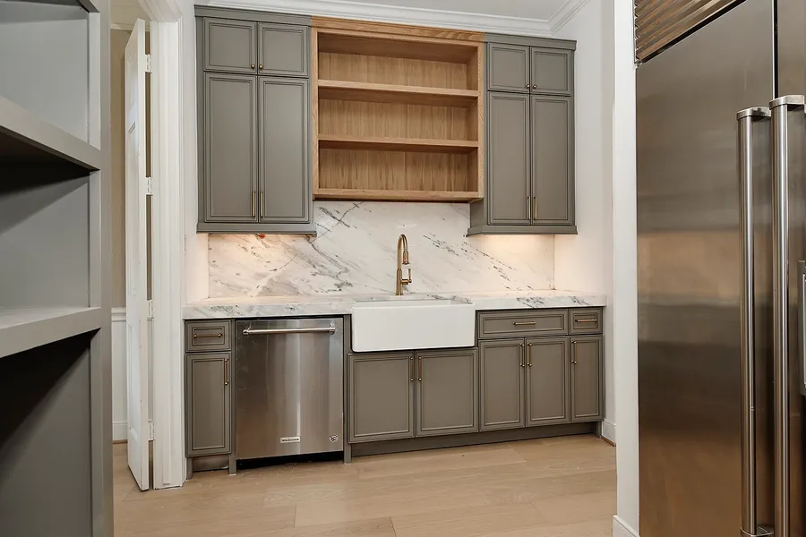 Situated on 1.3 Acres and framed by wooded surroundings, this estate-like home offers an immediate sense of privacy. Refined transitional architecture is revealed through the grand foyer with checkered marble floors and sweeping staircase, flanked by an executive study and dining. We continue into a formal living anchored by an arched marble fireplace, elegant moldings, and lighting ideal for intimate evenings. The home opens to the chef’s kitchen w/custom white oak cabinets, Taj Mahal Quartzite counters, high-end appliances including 2 Sub-Zero fridges and Viking cooktop. The kitchen flows seamlessly to the living area with vaulted ceiling, custom shelving system tv wall & expansive windows looking to the resort-style backyard. The primary suite offers a private retreat with seating area & spa-inspired bath with freestanding soaking tub, Quartzite frameless shower, dual vanities & separ...