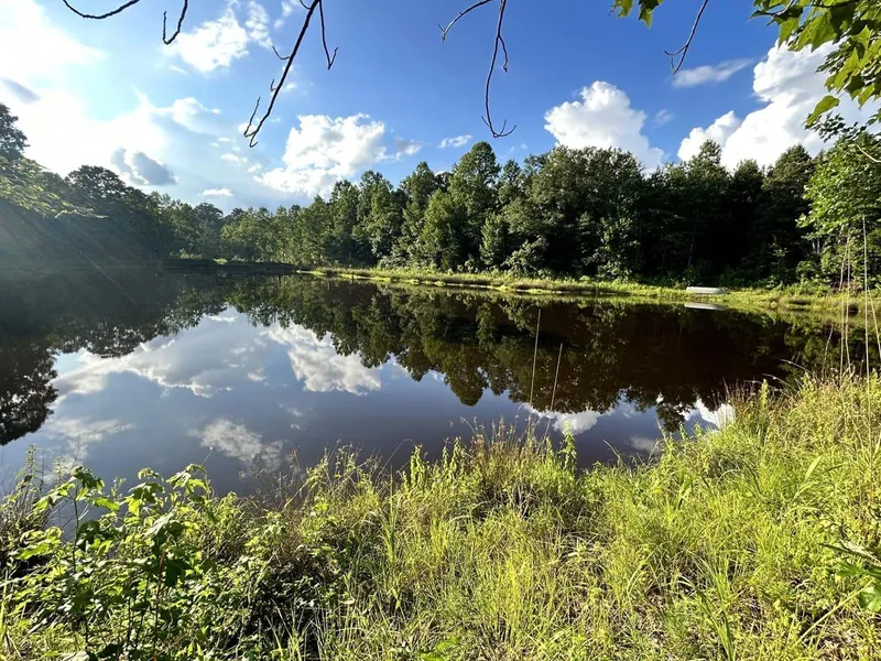This is the perfect piece of property that everyone has been looking for. This property offers a great spot for a camp house overlooking a lake, a live creek, power and 17yr old pines. With a little bit of TLC you can have yourself a dream property.Property has no deeded access.