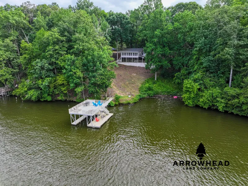 Beautiful lake house on year-round water with a gourmet kitchen, lots of windows with gorgeous views of the lake, and a natural path to the two-story floating dock. The house is convenient to restaurants, shopping, and North Marina. Move-in ready; sleeps 10 comfortably. Wedowee, Alabama, is a quaint southern town with a winery/brewery, gift shops, as well as restaurants with live music. 1.11+/- acre lot with 250+/- ft of shoreline; 1952 square feet - 2 bedrooms/2 baths with two master suites; gourmet kitchen with granite countertops; sunroom closes off for optional sleeping; floating double aluminum dock with sun deck and covered boat slip; large screened-in porch and open deck; pull-through garage/unfinished block basement 1442+/- sq feet. All showings are by appointment only. If you would like more information or would like to schedule a private viewing, please contact Cal Hardie at (770) 296-2163 .