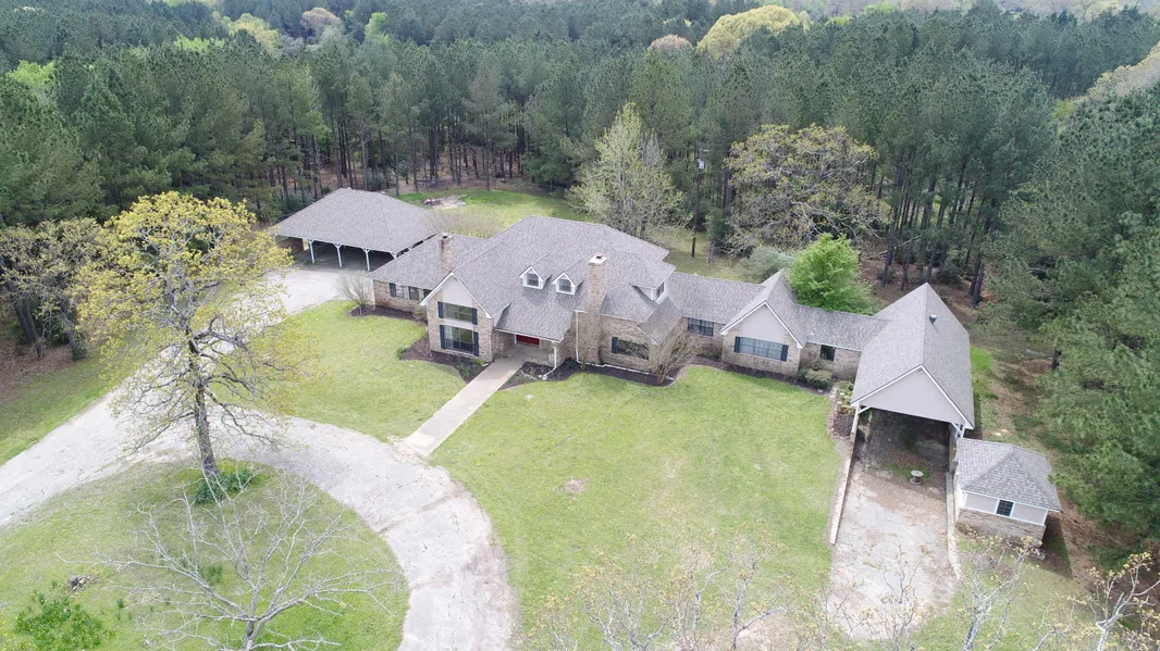 This secluded place has a nice approach with strategically placed trees to outline the driveway coming into the home with a circle driveway.