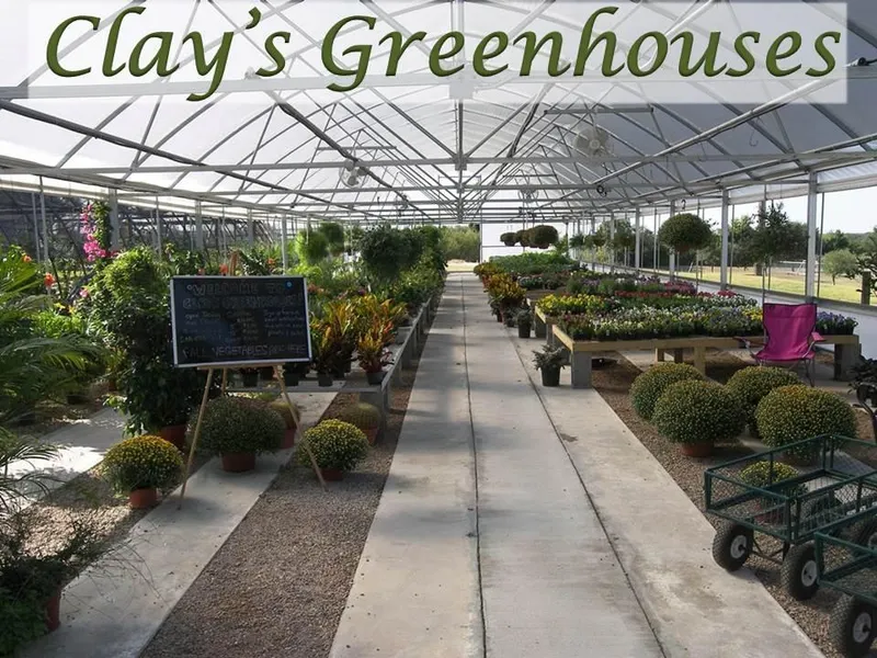 Welcome to Clay's Greenhouses, where the owners are happy to say "they have been growing healthy plants from the roots up since 1983"!! Conveniently located between Houston & San Antonio off I-10, this well-established wholesale/retail plant nursery proudly serves Central Texas with the highest quality & best variety of plants!