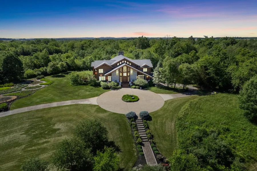 Welcome to this stunning estate featuring a luxurious Alpine Log Home nestled on over 165 acres in the heart of Ohio's farmland! Farm Nient, named by the owners, offers "Country Life Without a Care." This exquisite estate provides a serene escape with a perfect blend of rustic charm and modern amenities ideal for corporate retreats, large family gatherings, or an immaculate wedding venue. Entering the lodge is breathtaking, with the beautiful Montana logs visible throughout and giving you the feel of being "home." The spacious living area is bathed in natural light from large pane windows, complemented by high vaulted ceilings and a stunning stone fireplace. Offering approximately 7,800 square feet of living area, the home features six spacious bedrooms, five elegantly designed bathrooms, and two additional half bathrooms. The gourmet kitchen is a chef's dream, equipped with granite countertops, two dishwashers, and a Viking gas range. A suspended walkway atop the stairs accesses the upstairs guestrooms, and each has its own distinct feel and amazing views of the property. Beautiful hardwood flooring is found throughout and is complemented well by custom tiling in the bathrooms. Heart of Hickory flooring in the walkout basement offers a gorgeous and unique touch while the custom bar tops, one copper and one underlit agate, add to the attention to detail found throughout! The fully finished walkout basement is spacious and perfect for entertaining, and it includes its own wine cellar and bourbon/wet bar! A custom grilling area just off the basement exit is ideal for outdoor cooking enthusiasts. A large screened in patio with gas fireplace and plenty of deck area provide ample room to enjoy a morning cup of coffee while the sunrises or a cool beverage while watching the sunsets in any season! A large, stocked lake out the front door offers tranquil views and exceptional fishing opportunities. Approximately 35 acres of tillable ground provide a yearly income stream, while multiple hay fields add to the investment potential. The wooded acreage features subtle terrain changes with mature timber species, including oak, maple, hickory, and walnut varieties. Teeming with wildlife, this property is a hunter and nature lovers paradise! Paint Creek flows along the southern and westerly border, providing additional fishing and recreational activities. The abundant wildlife is evident with heavily traveled deer trails and numerous large rubs from this past season. Be sure to check out the trial camera images showing the trophy quality of this property! This tract is also an equestrian's dream, featuring plenty of ground for pasture and a well-kept three-stall horse barn with a tack room, its own water well, and electricity. Numerous bridle trails weave throughout the property, offering you hours of riding enjoyment. This stunning estate, sold fully furnished, truly offers 'Country Life Without a Care.' Whether you're looking to escape the hustle and bustle or create unforgettable memories with loved ones, Farm Nient is the perfect place to call home. Don't miss the opportunity to own this breathtaking property!