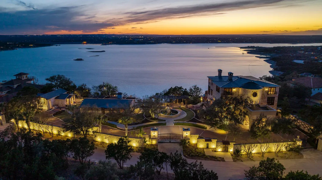 Located mere minutes from Marshall Ford Marina, and the iconic restaurant, ‘The Oasis on Lake Travis,’ this gated estate spans 1.4± acres and includes a majestic four-bedroom main house with four full bathrooms, two powder rooms, a theatre room, an office and expansive outdoor living areas. This is a fully automated smart home with security systems, storm shutters, and generators providing ease of use and convenience. Privacy abounds with a stone fence and three separate gated entries.