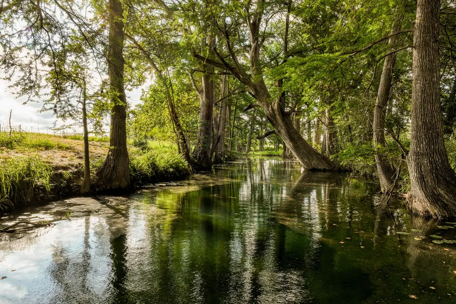 VEGETATION. The home is surrounded by large live oak while the pastures are studded with mesquite. The riverbanks showcase beautiful bald cypress, vibrant green native grasses and thriving aquatic plants.