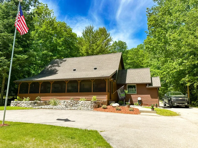 This Cape Cod, remodeled, year-round home sits on an acre on the west side of Hubbard Lake. Providing 3 BR, 2 BA & 2,016 SF. A/C here with a new furnace and Generac generator installed in 2024. 8 x 36 screened in porch with year-round captivating lake views. 29 x 11 living area, with knotty pine, tongue and groove walls, vaulted ceiling & hardwood flooring. 11 x 15 Galley style kitchen with granite counter tops, ceramic tile flooring. The main floor bedroom is 11 x 11 , with a 4 x 14 walk in closet where your stackable washer & dryer is located. 5 x 7 main floor full bath with ceramic tile shower and flooring. Upper level has been completely remodeled with an all new elegant railing, new insulation, plumbing, drywall, flooring, paint, and windows. Upstairs master BR is 17 x 9. Life proof laminate flooring in both bedrooms. Just off the master BR is the 9 x 7 BA with double sink, ceramic tile flooring, and walk-in ceramic tile surround shower. Second upstairs bedroom is 13 x 9 , with a large 8 x 10 closet. On the main level youll love the 12 x 24, new addition that was added on in 2023. With a 16 x 11 wet bar/entertainment area & 7 x 11 bonus room for your office or additional storage. High speed internet is available here. You'll love the extremely clean and filtered water with the Reverse osmosis filtration system. The 26 x 14 pole barn is perfect for storing the yard tools & ATV toys. Hubbard Lakes North End is less than 5 minutes away for your local grocery store, gas station and boat launch for enjoying a day of fun water activities out on the lake! Dont miss out on this one, come see it in person!